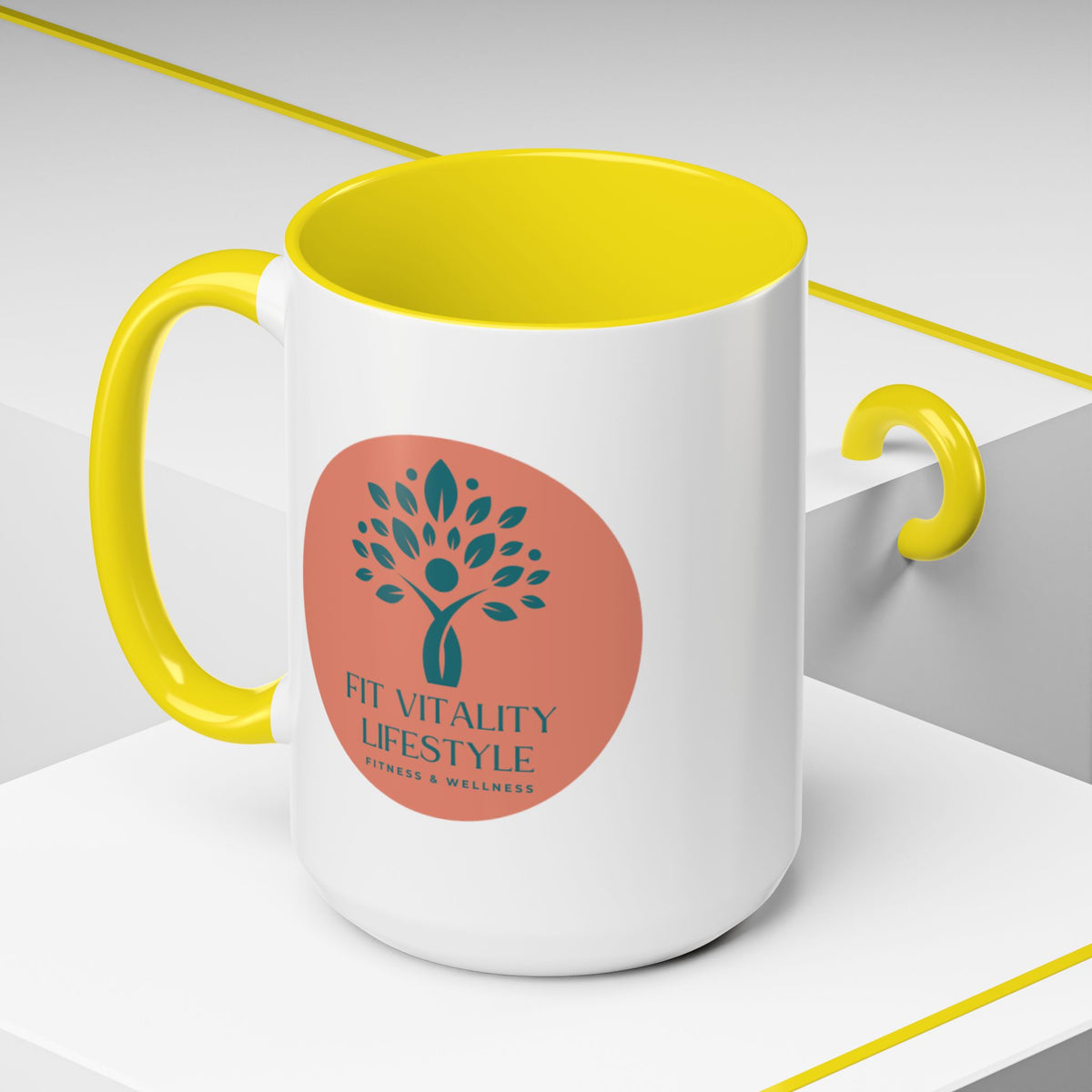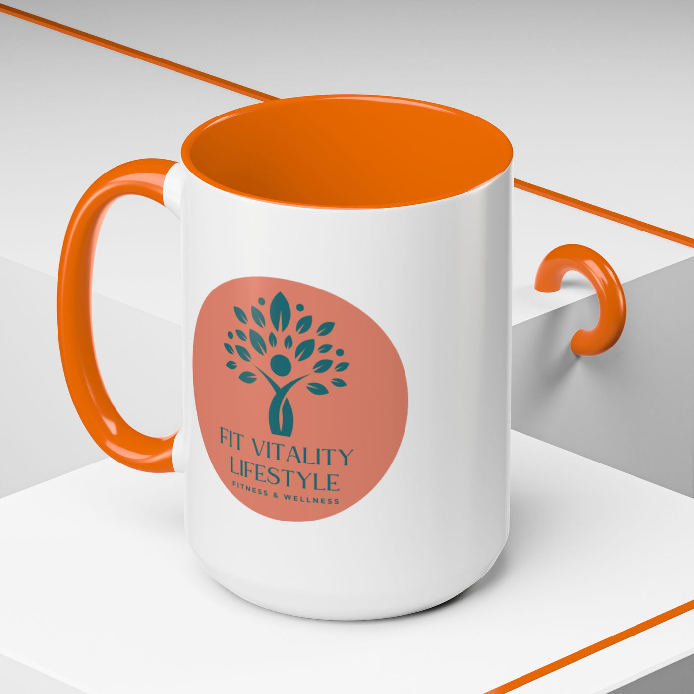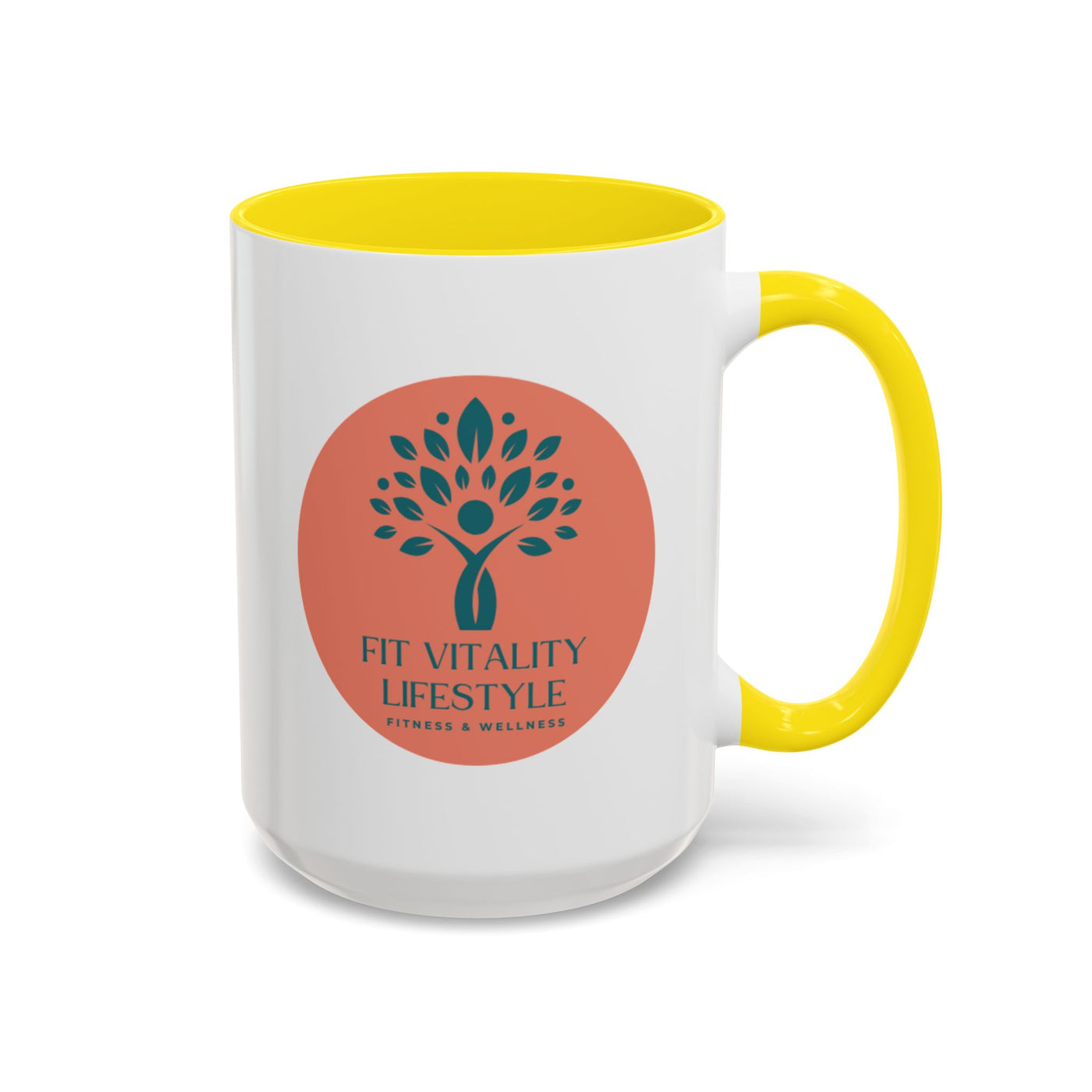 This ceramic accent mug brings a calm, health-focused energy to morning routines and mid-day refuels. The clean white body pairs with a contrasting colored interior and handle to frame the soft, earthy logo—a stylized tree and warm terracotta circle that reads “Fit Vitality Lifestyle.” Sip slowly and feel grounded: it’s the mug you reach for between workouts, during meal planning, or while reading wellness notes. The glossy finish makes the colors pop, and the sturdy C-handle keeps every pour comfortable. Whether it holds your coffee, tea, or post-workout shake, this mug quietly supports a balanced, active life.